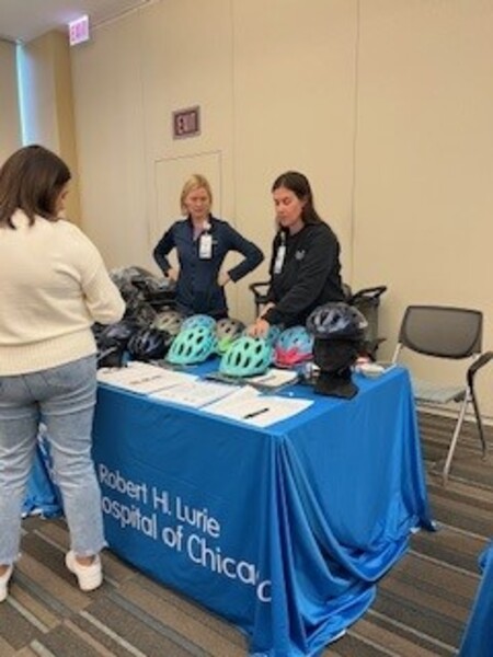 An injury prevention fair with free bike helmets, information on safe sleep, poison prevention, Stop the Bleed and much more. The event was a huge success. We distributed 100 Halo sleep sacks with information, 250 bike helmets, 25 gun locks, 2 gun safes and car seat information. The event was two hours. We served more than 80 Lurie Children's Hospital employees.